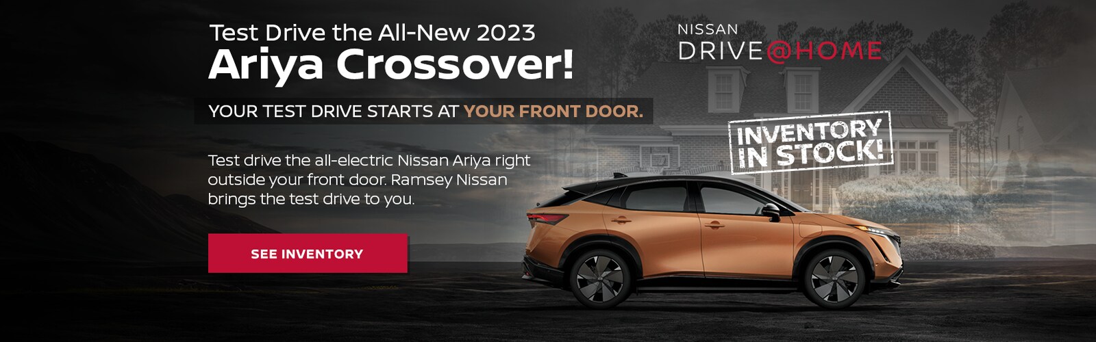 The All-New 2023 Nissan ARIYA is now available to test drive right from your front door. We will come to you so you may test drive this futuristic new electric crossover, at your convenience. You may also reserve your 2023 Nissan Ariya to start your ride into the electric future.