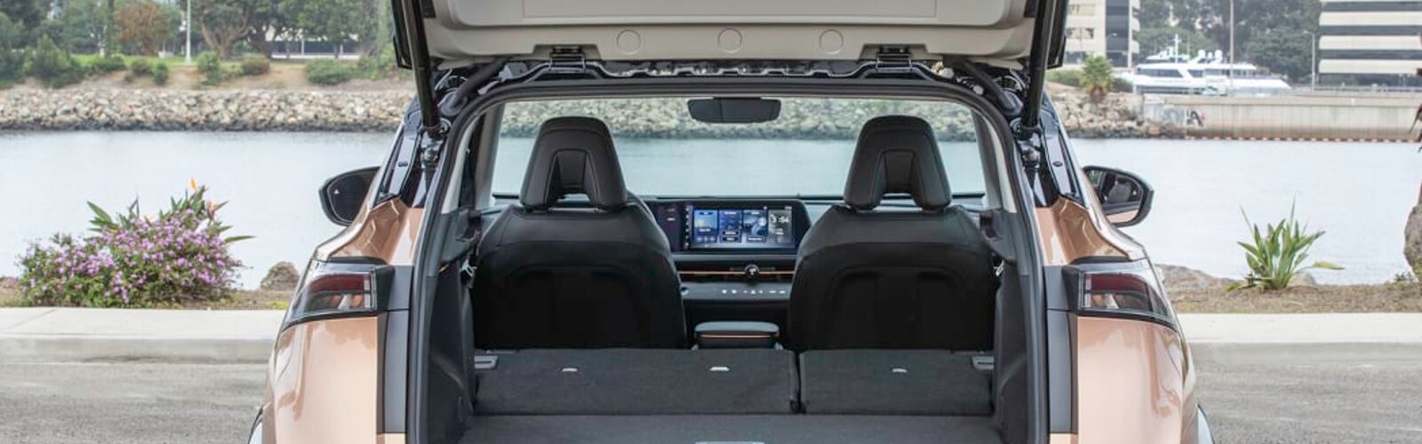 Please step inside. The spa-like nature of the Nissan ARIYA welcomes you with a wide-open design, front and rear outboard Zero Gravity seats, generous 2nd-row legroom and a sliding center console that can reshape your sense of comfort.* A serene ambience fills the cabin from a glowing lantern under the dash.